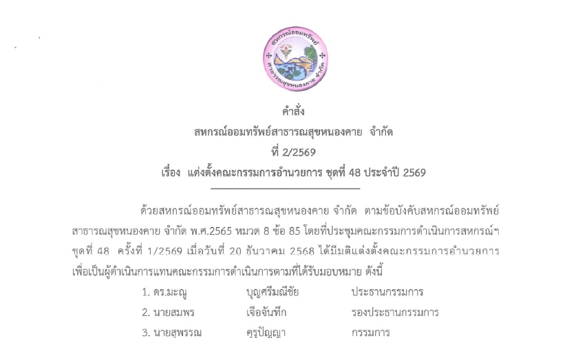 คำสั่งที่ 2 แต่งตั้งคณะกรรมการอำนวยการ ชุดที่ 48 ประจำปี 2569